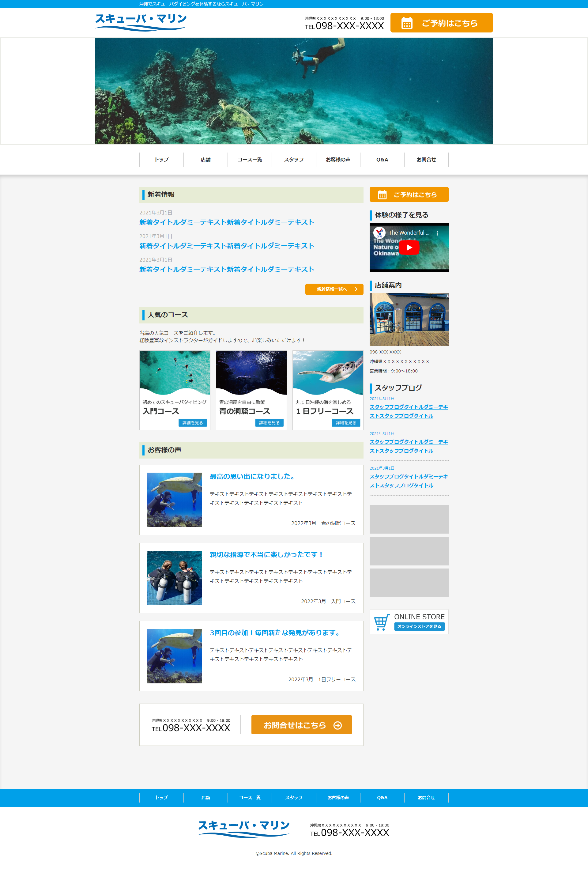 スキューバダイビング店様のHPです。(TOPページのみ)